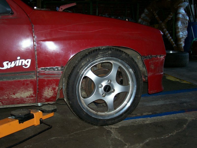 In der Reifenbreite ging ich (nach Rücksprache mit einigen Corsa Turbo-Fahrern) dazu über, auf das 215/40 Format zu setzen. Die vorher geplante 195er Breite, die im Geradeauslauf und in der Spurrillenempfindlichkeit sicherlich etwas positiver abgeschnitten hätte, wäre bei der Traktion allerdings im Nachteil. Und dieser Unterschied zwischen 195er und 215er Reifen ist nach Aussage der Turbofahrer derart spürbar, dass ich deren Ratschläge gerne aufgreife. Als Geschwindigkeitsindex der Reifen wird sowieso ZR (beziehungsweise W oder Y) vom TÜV vorgeschrieben, da der Corsa A Turbo mit cirka 240 km/h eingetragen wird und V-Bereifung eben nur bis maximal 240 km/h freigegeben ist. Und etwas "Luft nach oben" möchte man ja schon noch haben ;o) Bei der Wahl der Felgenbreite übermannte mich dann kurzzeitig die "Klotzen statt Kleckern" Euphorie und liess mich von 9Jx16-Felgen vom Typ Borbet T träumen - auch weil ich kaum 16-Zoll-Felgen im 5-Stern-Design mit ordentlichem (sogenannten) "Tiefbett" finden konnte. Aber auch hier liess ich mich dann aber auf die Ratschläge anderer Corsafahrer ein, die mich von dieser Grösse (trotz des maximalen Show-Charakters) wieder abbringen liessen. Genaueres dazu ist aber, wie gesagt, bereits im Kapitel Grundlegendes beschrieben. Meine Wahl fiel dann (nicht zuletzt auch aus Kostengründen) auf die "Langweiler-Felge" Borbet T in 7,5Jx16-Zoll mit einer Einpresstiefe (ET) von 35mm, auf die dann mein Wagen angepasst wurde. Wenn mir dann mal später deutlich hübschere Felgen im gleichen Format über den Weg laufen sollten, kann ich diese ja immer noch kaufen und montieren. Deshalb gehe ich jetzt auch einfach nur mal auf den handwerklichen Umbau ein.